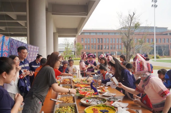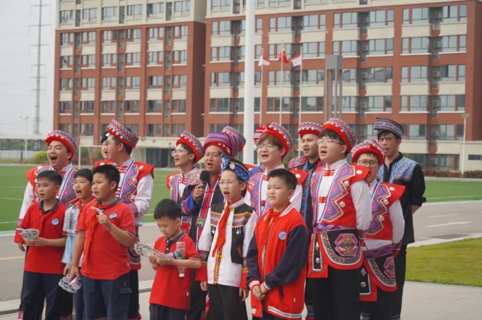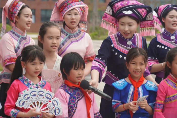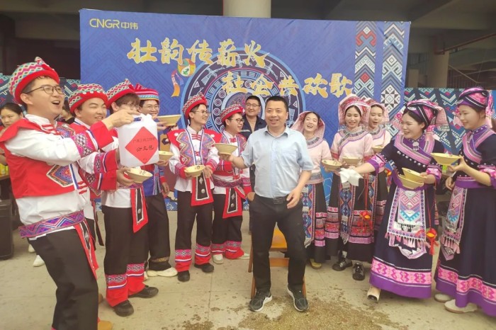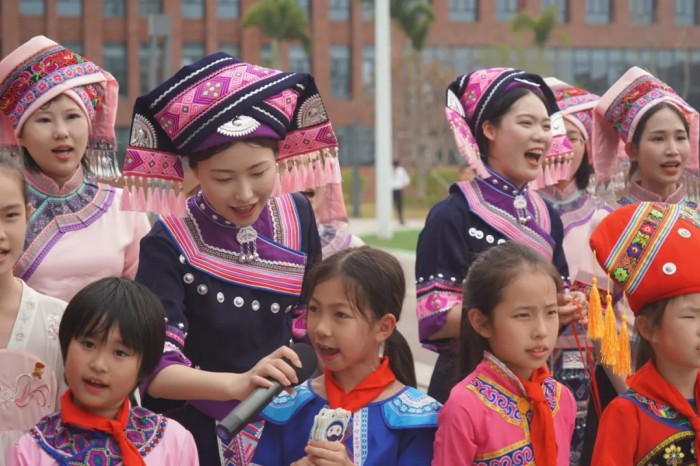 隨著一陣清脆的竹笛聲響起,基地員工、社區(qū)居民和學(xué)校師生們身著靚麗民族服飾隆重登場,化身“劉三姐”和“阿牛哥”進(jìn)行山歌對唱。大家以歌言志、以歌會(huì)友、以歌傳情,唱響社企共建的優(yōu)美旋律,讓動(dòng)聽山歌在新時(shí)代的舞臺上煥發(fā)出全新光彩。